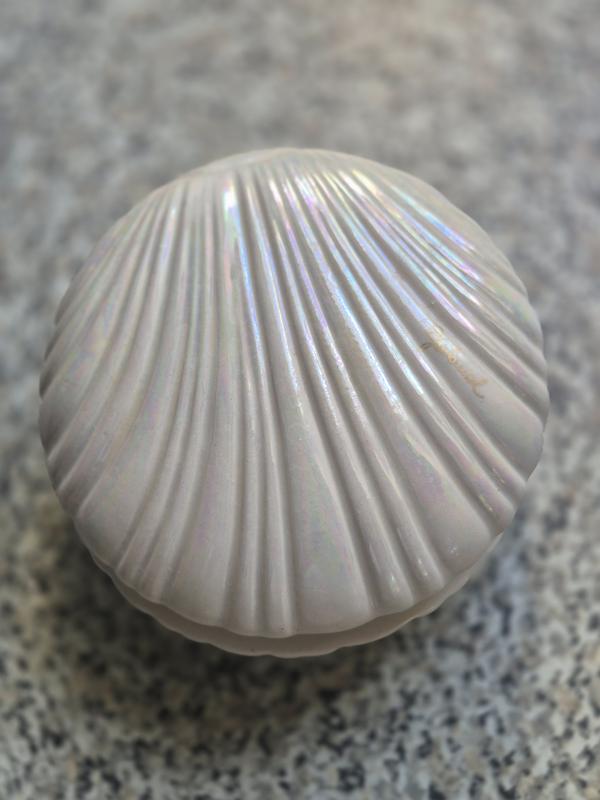 ВНИМАНИЕ! Условия сотрудничества указаны в разделе "Про меня". 100% оплата на картку. Милый керамический ящик для хранения. Шкатулка в форме ракушки. Трохи перламутрова. Очень стильная и удобная для хранения чего-то мелкого (ваттные диски/ палочки). Зручна. Нюансы: в некоторых местах имеет кракелюр. На фото показала. Середина между двумя частицами ракушки выполнена из пластика и была золотого цвета. Мне к декору не подходят и я стерла золотой цвет и она там стала белой. Если присмотреться, то там немного есть остатки золотого. Но элегантная, стильная и удобная. Мушля, ракушка, shells, шкатулка, бокс 13 см диаметр высота 6 см