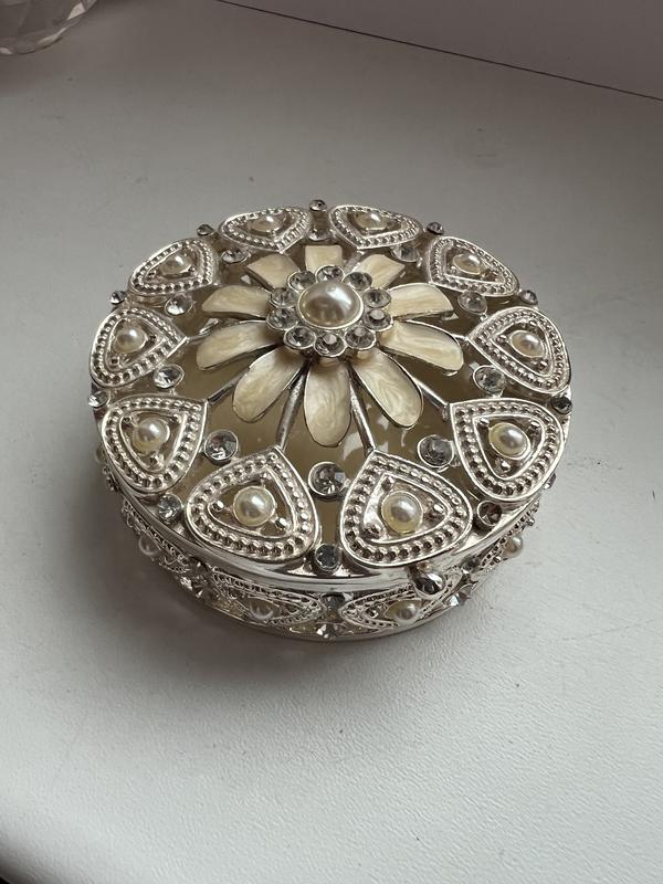 Кругла скринька для дрібниць sophia із срібним покриттям та перлинним квітковим візерунком...