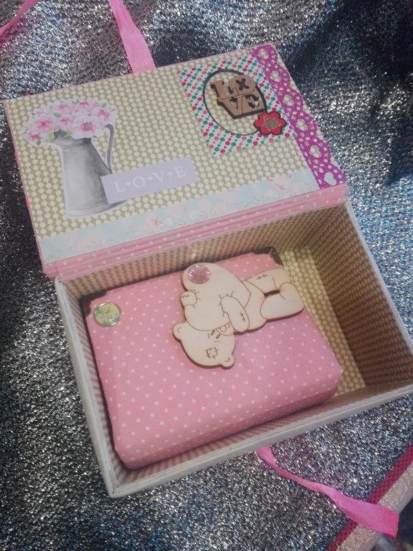 Шкатулка ручної роботи у стилі скрапбукінг.Розмір шкатулки 15,5 см на 10,5 см, висота 7 див. Шкатулка обтягнута тканиною і синтепоном.альбом не входить у вартість, його можна придбати окремо. Прекрасно підійде для подарунка.Зберігайте спогади красиво. Будьте оригінальні.