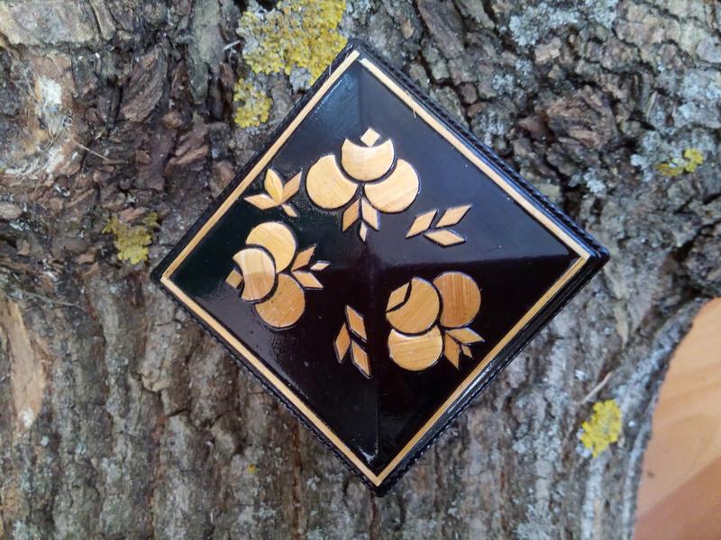 Оригинальная миниатюрная шкатулочку-ларец времен СССР производства Дарницкой фабрики сувенирно-подарочных изделий (Киев), 70-е годы. Интересна фабрика тем, что в свое время там выпускали достойные вещи, в том числе сувенирную галантерею. Очень милая вещица! Материал изделия - колкий пластик. Крышка вручную инкрустирована соломкой, сама шкатулочка имеет витиеватые орнаментальные вставки. Миниатюра, размер изделия: 5 х 5 х 3,5 см. Состояние хорошее, без дефектов. Станет отличным подарком как коллекционеру винтажа, даря особое очарование ушедшего времени, дополнит декор туалетного столика, послужит по назначению для хранения украшений, таблеток, бусин и прочей мелочи.