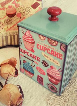 Короб для сладостей. Выполнен в технике декупаж. Винтажный дизайн короба сделает ваш интерьер еще более стильным. Можно дополнить набором кухонной утвари в таком же дизайне. Размеры: 12*12*15
