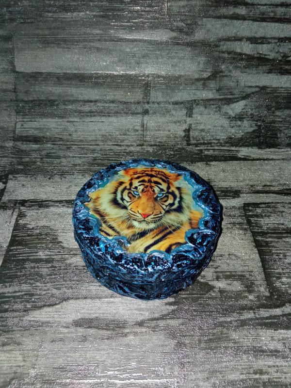 Жестяная коробочка декорирована под шкатулку. Диаметр 10 см , высота 4 см.