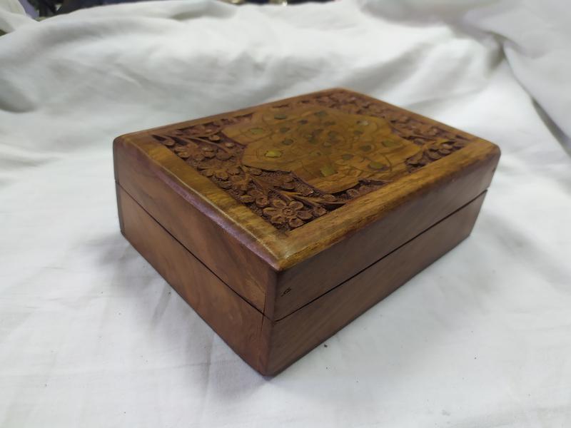 Резная деревянная шкатулка с латунными вставками. 174х124х60мм