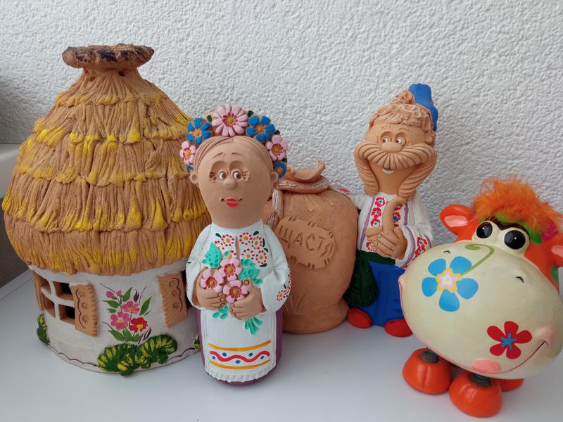 Набір глиняних виробів щастя. козак, українська господиня, хата, корівка...