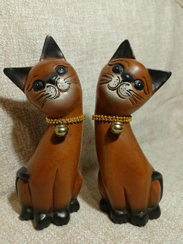 Парные статуэтки из дерева кошечки. Ручная работа, привезены из Таиланда. Высота кошечки 21 см. Цена за пару.