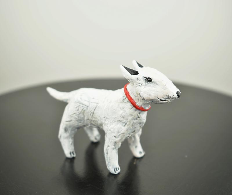 Авторская, керамическая статуэтка в виде собаки породы Бультерьер, отличный подарок для коллекционера собак. 8x6см. На заказ 2 дня!