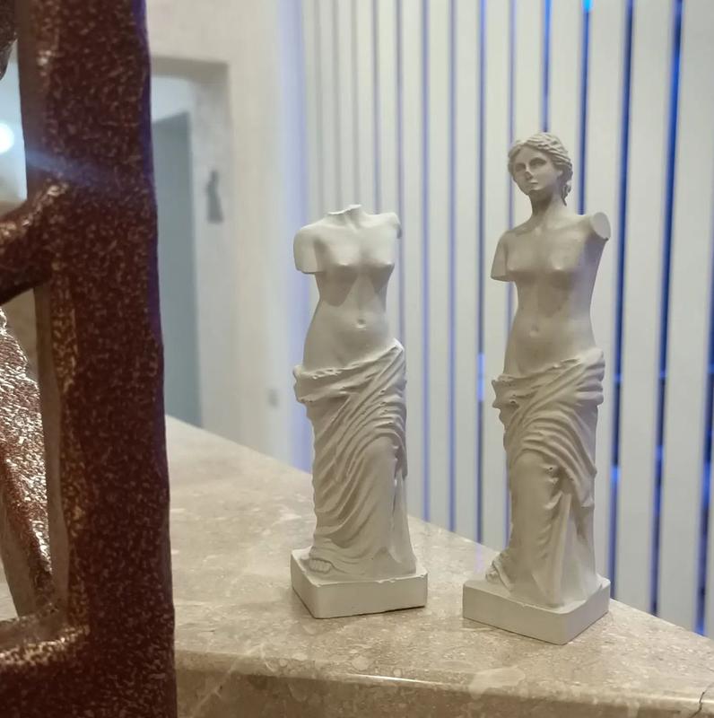 Статуетка Венера виготовлена з гіпсу , підійде як елемент декору для інтер'єру , також як фон для предметної зйомки . Висота с головою 14 см Высота без головы 12 см Колір: Білий