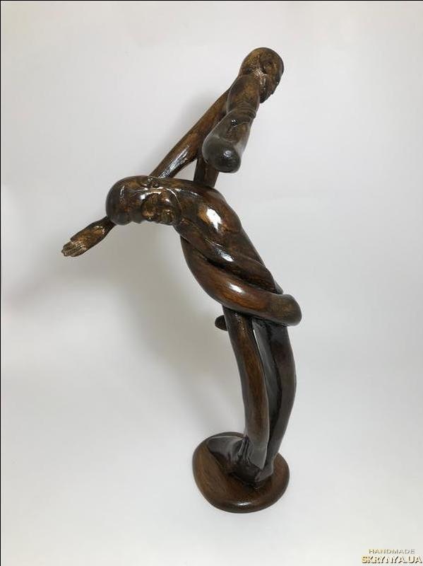Скульптура з кореня дерева, цільний корінь дерева, крім підставки. Вид природний,додано кілька елементів. Ручна різьба по дереву. Розміри: 36х15х16 см, покрита лаком.