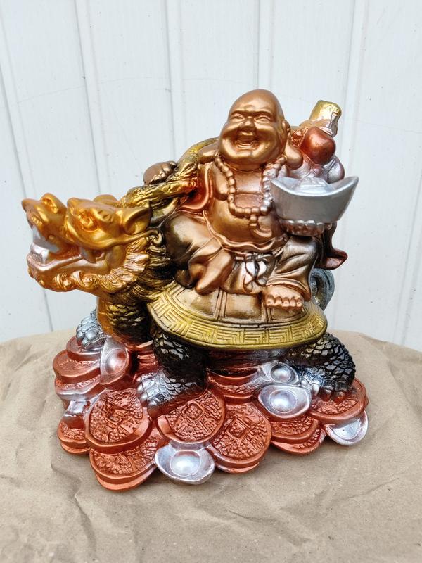Фигурка Будды (второе ее название - Хотей) является одним из ключевых символов древнекитайского учения фэншуй. Она представляет собой полного улыбающегося мужчину, сидящего на подставке. Фигурка смеющегося бога - очень могущественный талисман, который наполняет жилище положительной и чистой энергией Ци. Преимущество восточных талисманов состоит в том, что они легко и непринужденно вписываются в любую обстановку.