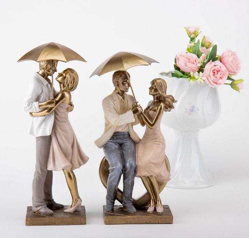 Статуэтка имеет изысканный внешний вид, она изготовлена из высококачественного материала – полистоуна, имеет благородный бронзовый цвет и нежные оттенки наряда девушки и парня. Статуэтка будет вызывать приятные эмоции и трепетные воспоминания. Фигурка устойчиво стоит на подставке, пар держит съемный зонтик. Статуэтка плотно, качественно упакована, зонт упакован отдельно.