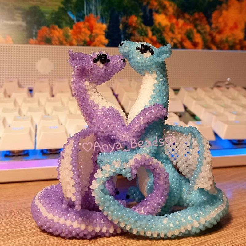 Драконы из бисера, брелок статуэтка