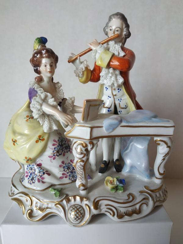 Фарфоровая статуэтка, старая Германия. Высота 14 см Ширина 13 см Есть номер в тесте. Есть микроскол на манжете у музыканта