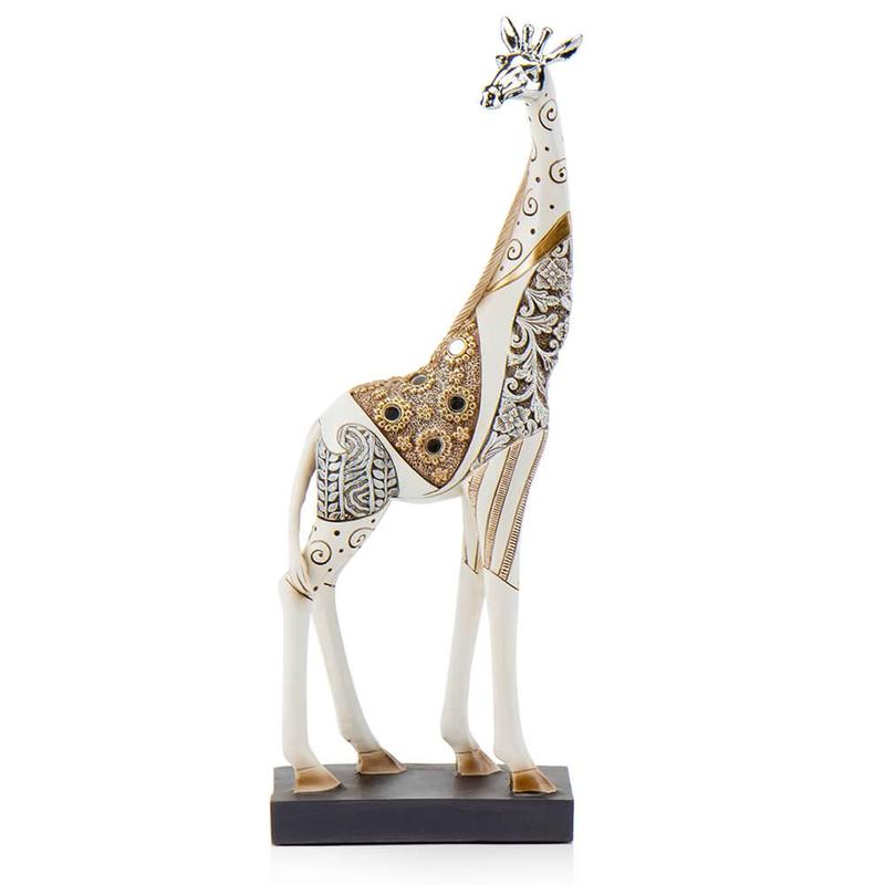 Декоративна статуетка жирафа - це витончена, вишукана фігурка з полістона, яка ідеально підходить для подарунка творчій натурі, друзям, колегам. Фігурка дуже красива і прикрасить будь-який інтер'єр. Вона виконана з якісного полістону, має благородний зовнішній вигляд - біла фігурка з золотими Етно візерунками. Статуетка стоїть стабільно.