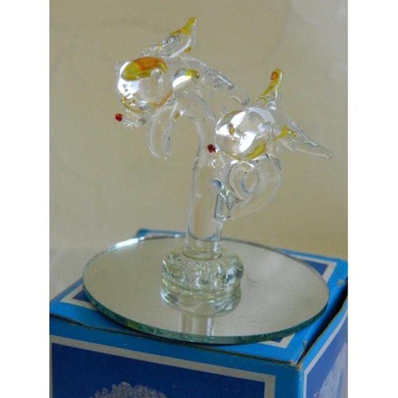 Статуэтка Дельфины на зеркале. Стекло. Высота 12 см. Новая в коробке.