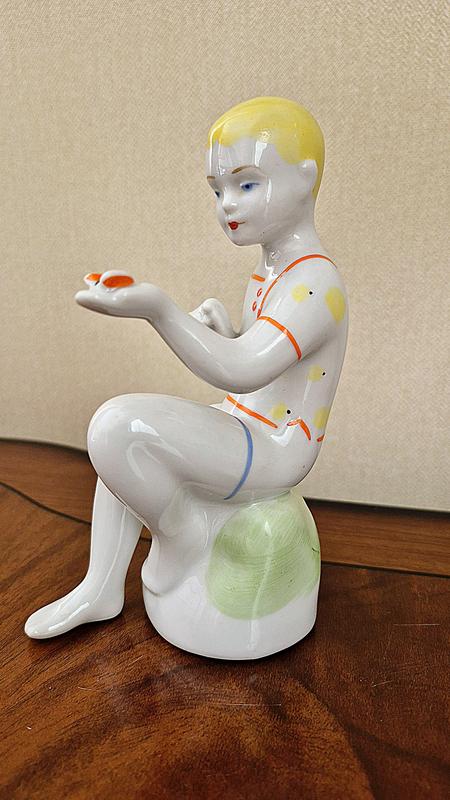 Статуэтка мальчик с бабочкой схк пленит винтаж фарфоровая винтажная