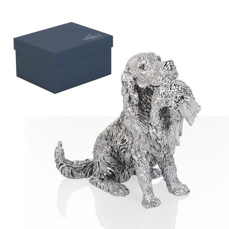 Італійська компаніяChinelliвже більше 20 років створює вишуканий посуд та аксесуари з латуні з розкішним покриттям з дорогоцінних металів - срібленням і позолотою. Виробництво знаходиться на півночі Італії у відомому регіоні Люмеццане (Lumezzane) - "ядре" металевого виробництва. Бездоганна якість і ексклюзивний витончений дизайн є основною традицією брендуChinelli. Незважаючи на використання сучасного обладнання, частина продукції виробляється вручну, що робить її ціннішою. Кожен виріб має свій індивідуальний номер та паспорт відповідності, що підтверджує оригінальність його походження. Напилення золота і срібла виробляється товщиною 15 мікрон, зверху нанесено захисне полімерне покриття, що запобігає потемнінню срібла і зберігає первозданний вид виробів протягом довгих років. Статуетка "Спаніель" з дичиною в зубах - оригінальний інтер'єрний аксесуар і стильна символічна статуетка, а також благородний подарунок любителю ексклюзивних прикрас.