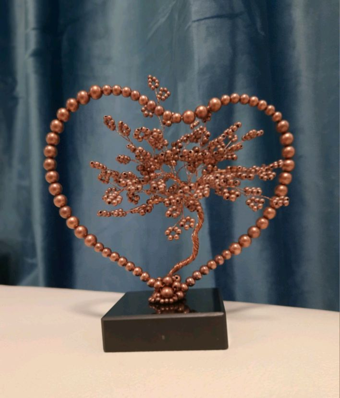 Тип аксесуара: Статуетки Дерево з мідних дротів і намистин під мідь.Висота 18 см.Підійде на 7 річницю весілля, мідне весілля. Подарункова коробка додатково +70 грн.