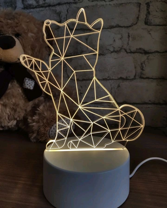 Тип аксесуара: LED підсвічування Кілька примірників у наявності Нічник має монохромне світіння Підставка білого кольору, сама лампа із акрилу з 3D малюнком Живлення від USB кабелю