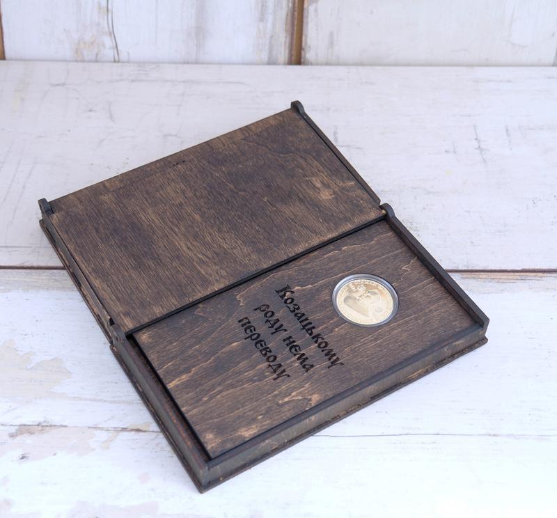 Тип аксесуара: Інший тип аксесуару Кілька примірників у наявності Новинка. Роблю на замовлення. Персональну гравіювання на підставці коробочці можу робити за вашим макетом або наданим описом. Подарунок для шановану людину, коханого або одного до дня народження чи ювілею або до свята. Монета знаходиться буде в пластиковій капсулі і в оригінальній подарунковій коробочці і з гравіруванням. На аверсі монети зображено отаман запорізької січі Петро Калнишевський. На реверсі Герб України та номінал 1 гетьман. Діаметр монети 31мм товщина 2мм. Матеріал латунь, мідь або срібло 925пробы на вибір. Гурт звичайний. З срібною монетою 1000 буде коштувати комплект. Підставка і коробка виготовляється з якісної фанери і пофарбувати олійною фарбою колір волоський горіх. І упаковую в крафт папір. На індивідуальні замовлення монети на якій можна зробити лазерне гравіювання портрет або логотип компанії або інші побажання обумовлюються в індивідуальному порядку. Телефонуйте.