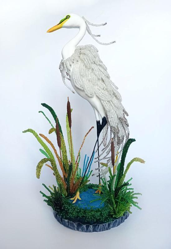 Декоративная цапля (аист) из полимерной глины и бисера. Размер 15 на 29 см Только самовывоз (Киев, Дарницкий район)