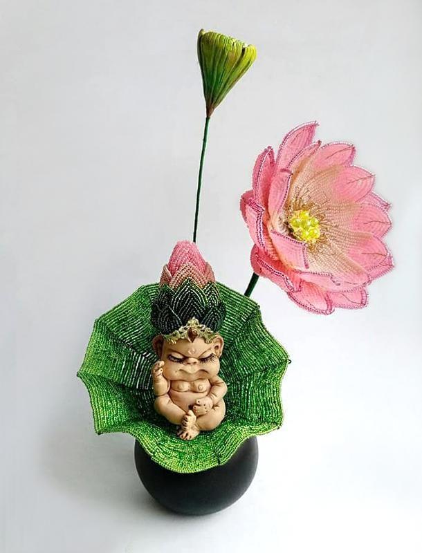 Декоративная композиция из бисера и полимерной глины. 24 на 36 см, человечек 12 см Только самовывоз (Киев, Дарницкий район)
