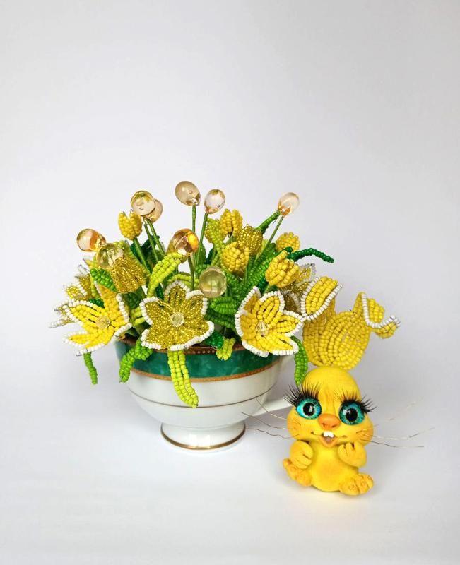 Композиция ручной работы из бисера и полимерной глины, продается без чашки.
