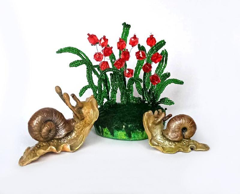 Маленькие улиточки из полимерной глины с бисерными цветами