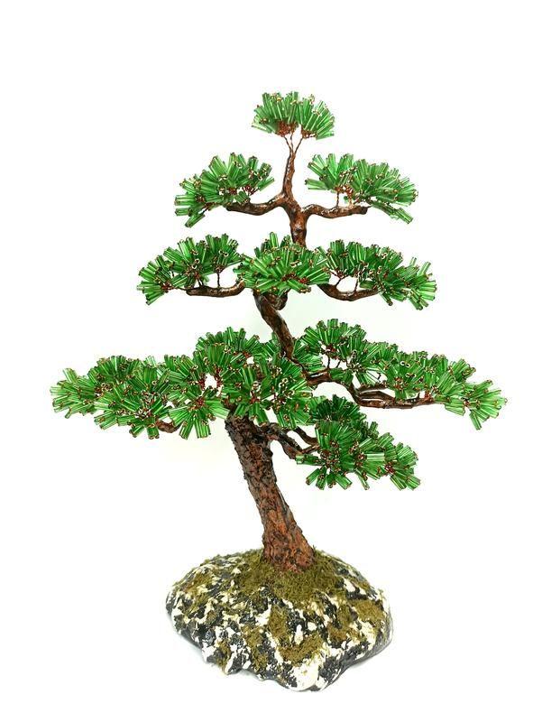Дерево из бисера сосна изготовлено из бисера стеклярус.