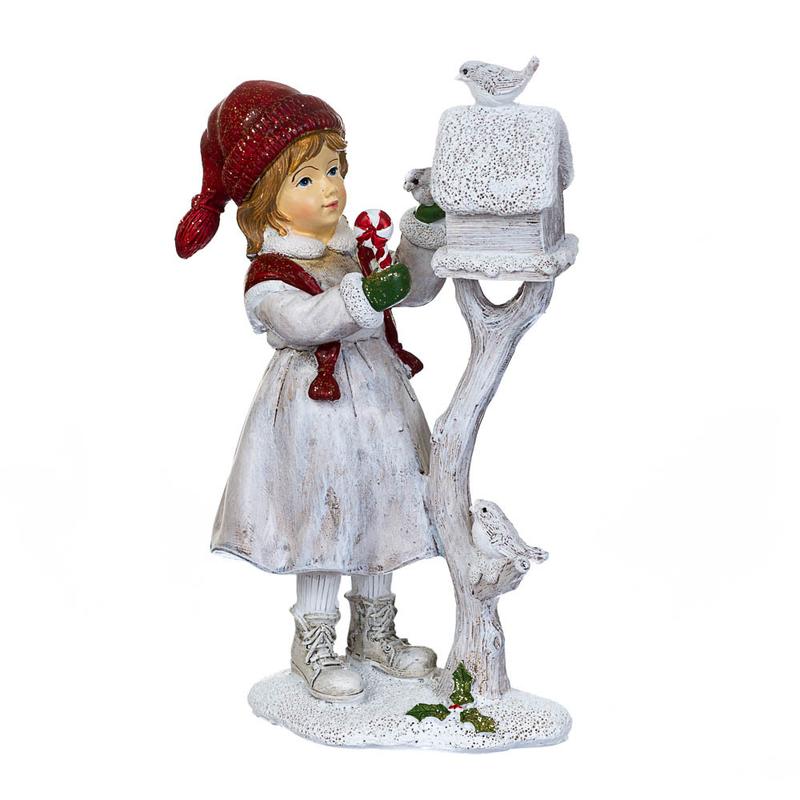 Керамическая новогодняя декоративная статуэтка "девочка с птичками"