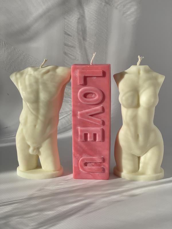 Тип аксесуара: Свічки Кілька примірників у наявності Набір для закоханих і особливих! До набору входять три свічки із соєвого воску: LOVE U, чоловічий і жіночий силует. Цей набір прикрасить ваш дім і додасть любові й тепла. Виробник: Handmade Країна виробник: Україна Матеріал виготовлення: Соєвий віск Ароматизована: Ні Кількість свічок в наборі: 3 шт. Час горіння: 3.0 година Висота свічки: 125 мм Колір: Різні кольори Вид свічки: Свічка-фігурка