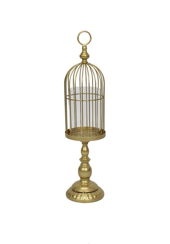 Підсвічник металевий зі скляною колбою у формі пташиної клітки...