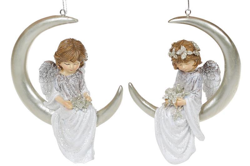 Декоративна підвіска янгол на місяці, 17.5см, колір - шампань ...