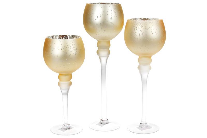 Набір (3 шт) скляних свічників, 30/35/40см, колір - матове золото