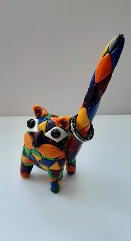 Фигурка кота из полимерной глины. Держатель колец. Полимерная глина. Лак. Высота 6,5см Высота с хвостом 13см. Ширина 4,5см.