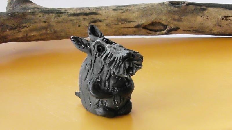 Авторская, керамическая статуэтка в виде терьера, ручной работы. 4x4.5см.