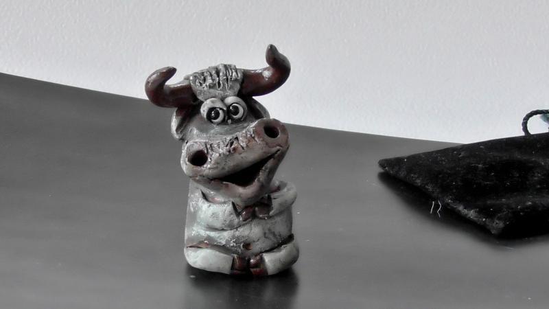 Авторская, керамическая фигурка в виде бычка. 4.5x5см.