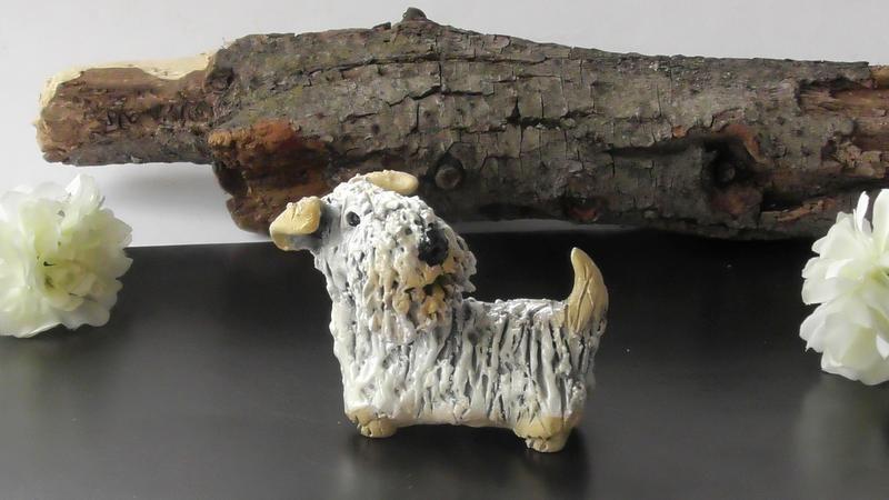 Авторская, керамическая фигурка, ручной работы, в виде собаки породы Силихем-терьер. (5.5x5см) Товар под заказ