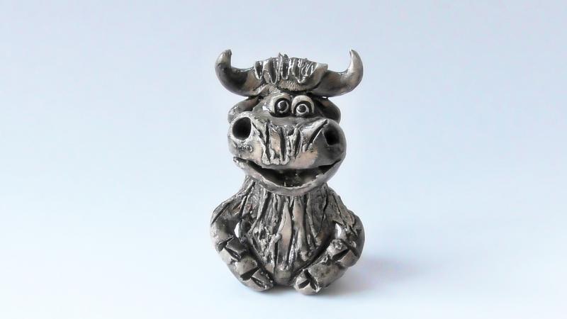 Авторская, керамическая фигурка в виде быка, символа 2021 года. (4.5x6.5см) Товар под заказ