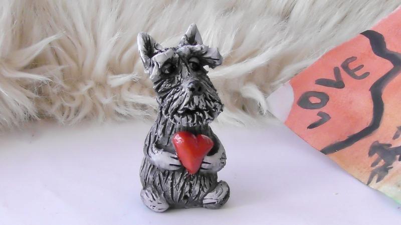 Керамическая фигурка в виде собаки, породы терьер с сердечком. 5x7см. Товар под заказ