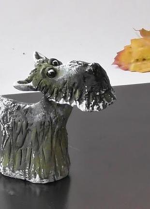 Авторская, керамическая фигурка, ручной работы, в виде собаки породы терьер. 6.5x7см. Товар под заказ