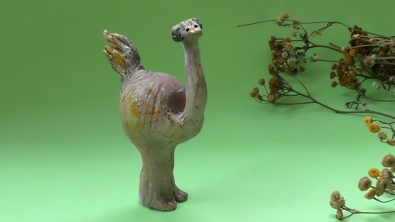 Авторская керамическая статуэтка Страуса ручной работы. 10x8