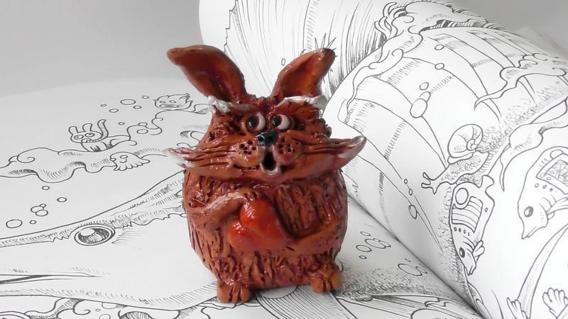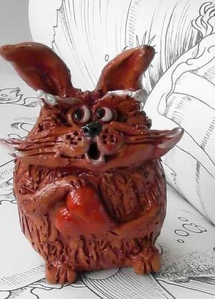 Авторская, керамическая фигурка в виде зайчика, ручной работы. 5×8см. Товар под заказ