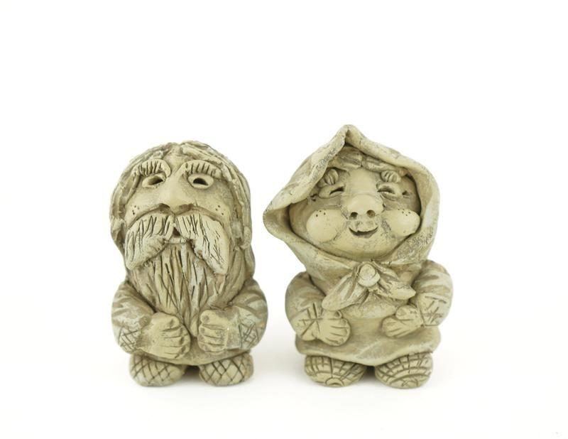 Авторские керамические статуэтки бабушки и дедушки ручной работы, очень оригинальный и интересный подарок. 5x6.6 (2шт.)