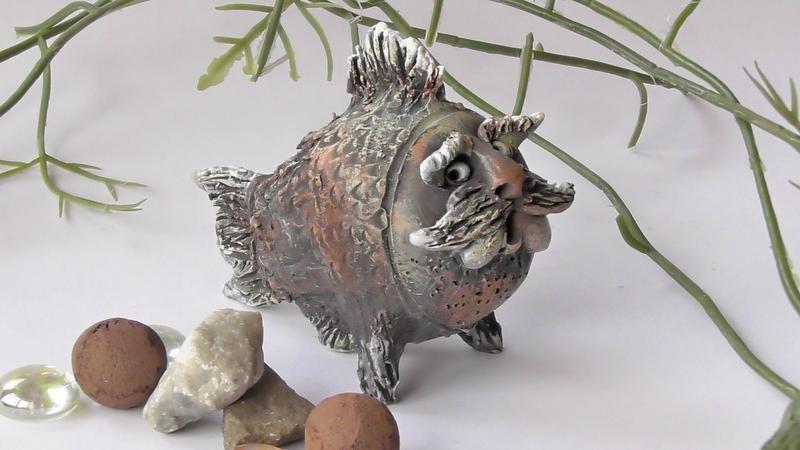 Авторская керамическая статуэтка в виде рыбы, ручной работы. (6x7см) Товар под заказ