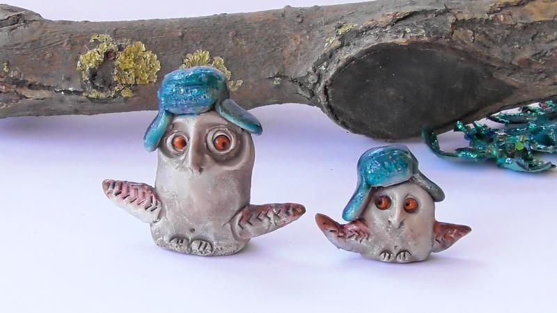 Авторские керамические статуэтки в виде сов из обожженной белой глины, ручной работы, 2 шт. (6x6см)(4x4) Товар под заказ