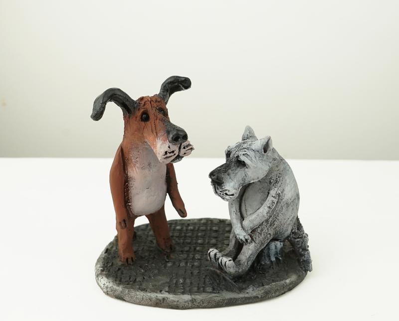 Авторская, керамическая статуэтка с персонажами мультипликационного фильма "Жил был Пёс". Такая милая статуэтка станет прекрасным подарком для коллекционера и любителя старых, добрых мультфильмов. (10x8см) Товар под заказ