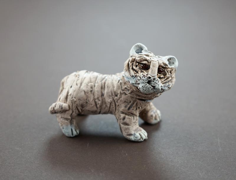 Керамическая статуэтка в виде тигра, ручной работы. 6.5×6см.