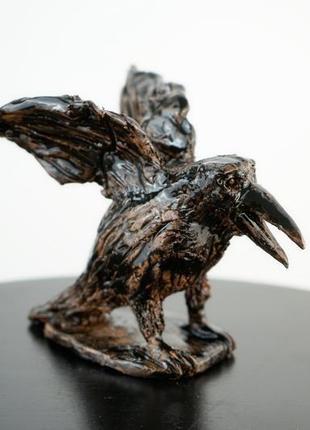 Керамическая статуэтка в виде вороны, ручной работы. 12x12см. Товар под заказ