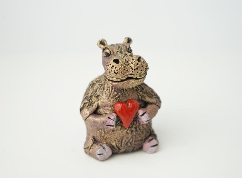 Керамическая фигурка в виде бегемота с сердцем. Такой бегемотик, непременно станет приятным подарком для близких и родных Вам людей. 7x5см. Товар под заказ