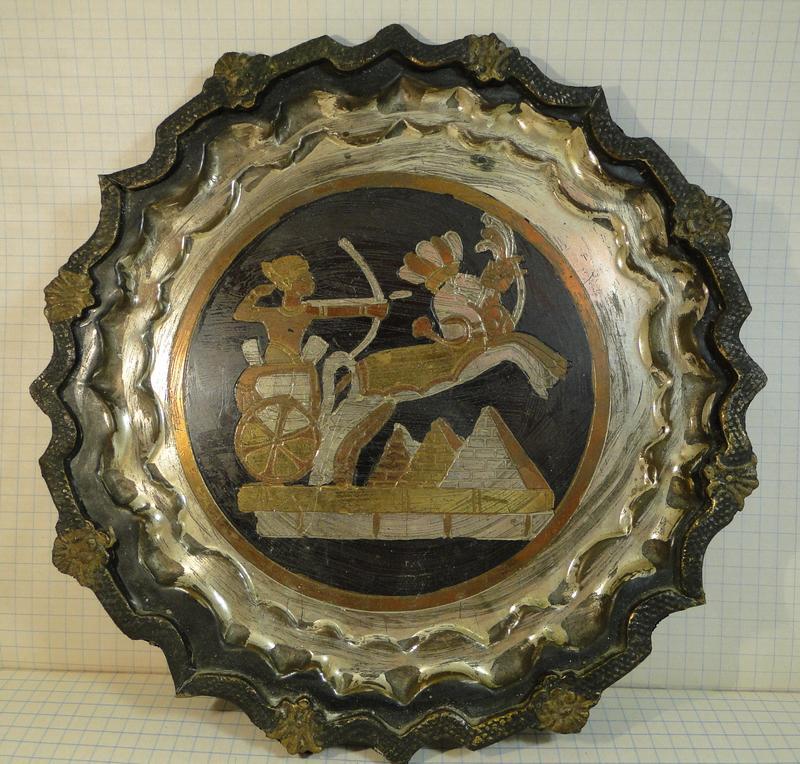 Тарелка настенная бронзовая с рисунком. Латунь . Вес 205 гр. . Диаметр 19 см.
